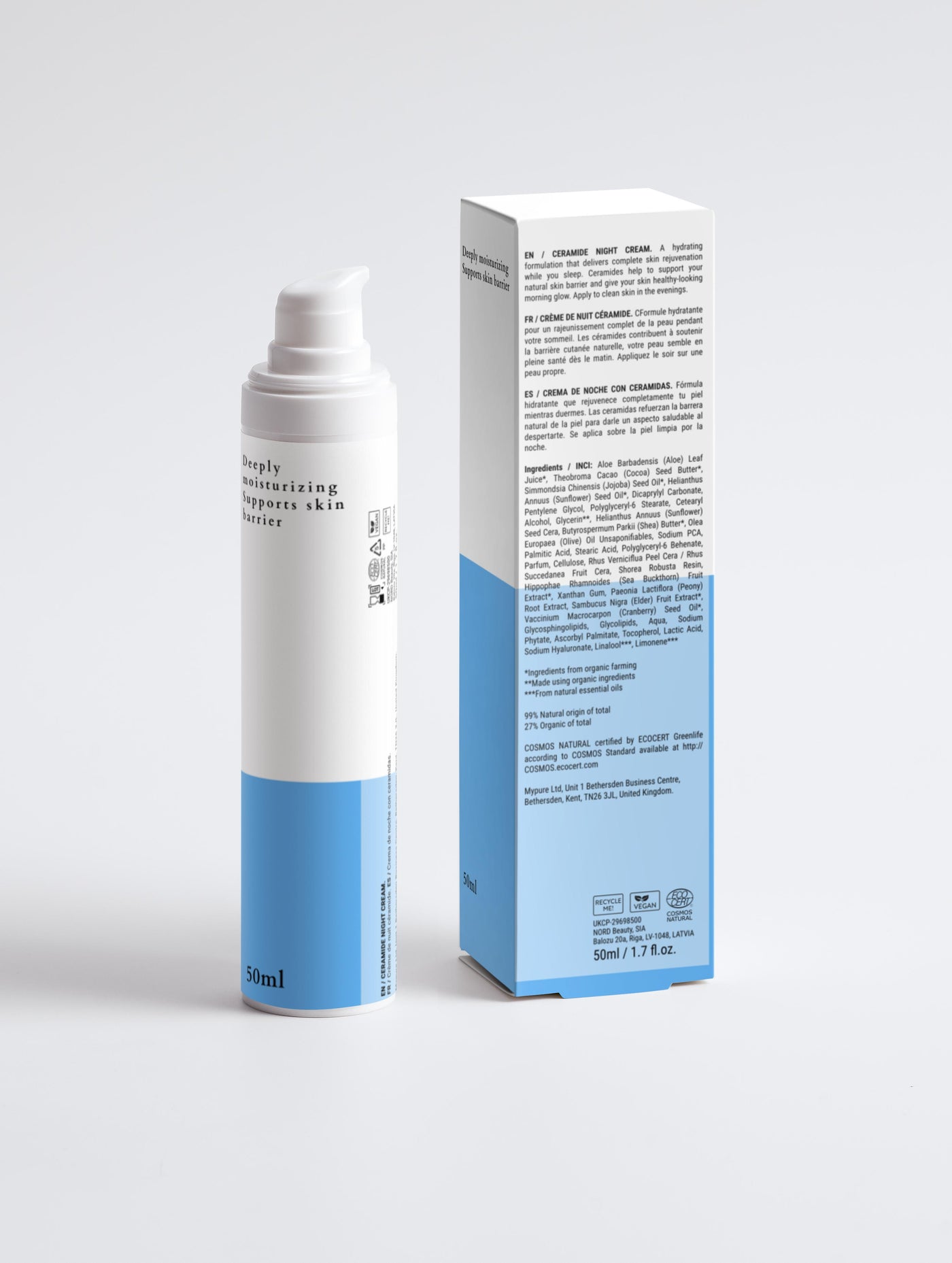 Product description: The Ceramide Hydrating Night Cream is thoughtfully formulated with ingredients that work their magic overnight, promoting skin renewal and a radiant glow. Hydrating formulation glides effortlessly onto your skin and delivers complete skin rejuvenation while you sleep. Ceramides help to support natural skin barrier and give your skin healthy-looking skin in the morning.