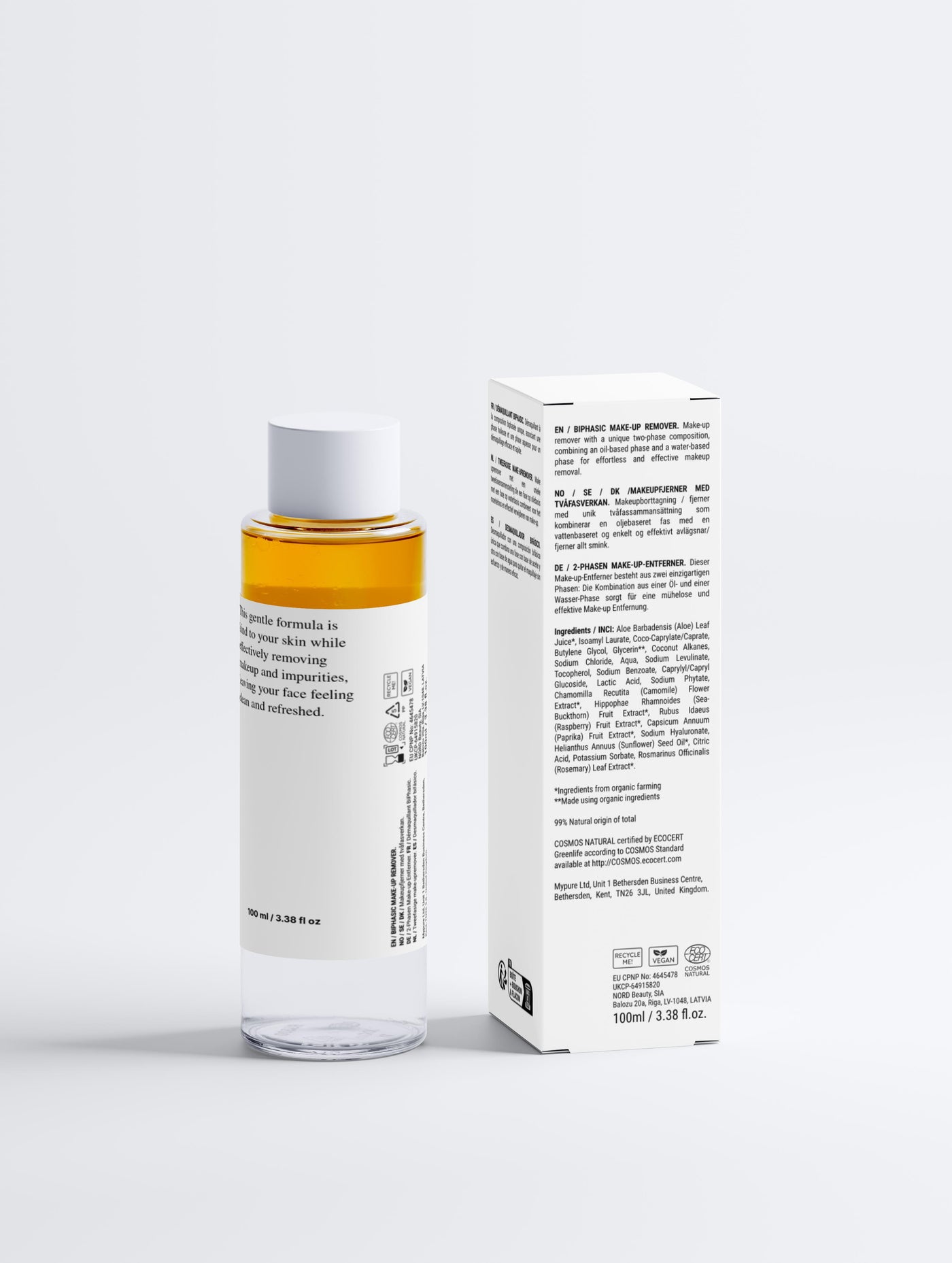 Product Description: Make-up remover with a unique two-phase composition, combining an oil-based phase and a water-based phase for effortless and effective makeup removal. This fragrance-free formulation gently cleanses, soothes, and leaves the skin feeling hydrated. Gentle to skin, removes make-up and impurities. face-care, Cleanser (Type)